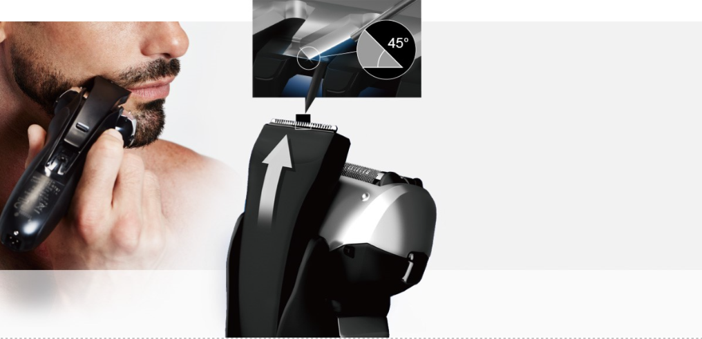 Knivene med 45° skærevinkel giver en hurtig og bekvem trimning og gør, at kanterne på overskæg og bakkenbarter kan trimmes nemt og præcist.
