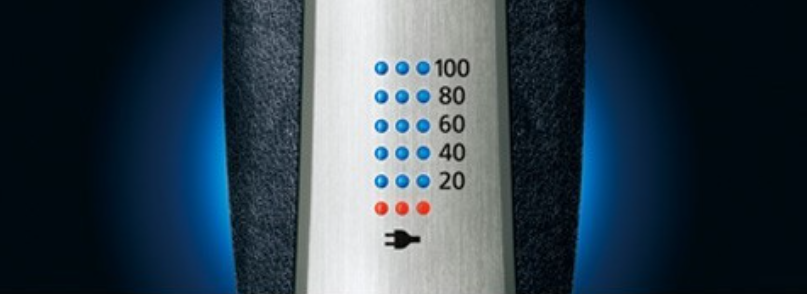 5-trins LED-display viser batterikapacitet og opladningsstatus.