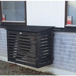 Ubehandlet træhus, fremstillet af svensk kernetræ. FSC® certificeret.Huset påvirker varmepumpens ydelse minimalt.